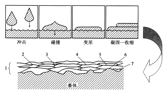 熱噴涂過程主要包括:噴涂材料的熔化;噴涂材料的霧化;噴涂材料的飛行;粒子的沖擊、凝固。